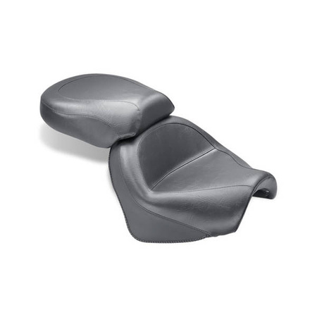 A plain touring seat with 16" wide rider area and 12" wide passenger area. The Standard Touring platform features several design improvements over the stock seat. A deeply pocketed driver bucket sits you in the ideal cruising angle at a similar reach to the controls compared to stock. The driver's back is well supported by the nose of the passenger seat that extends forward to create a full high backrest.