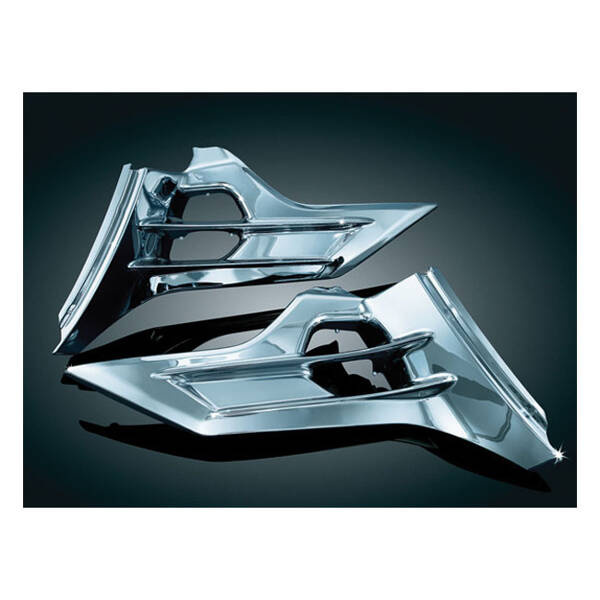 Dress up the mid section of your Gold Wing! These covers feature a lustrous chrome finish, cutting edge louvered styling, & even provisions for adding custom back-lighting. Covers this cool will stand out for their contemporary styling & distinctive good looks. Simply bolt in place and instantly add a sleek new look with a brilliant shine.
