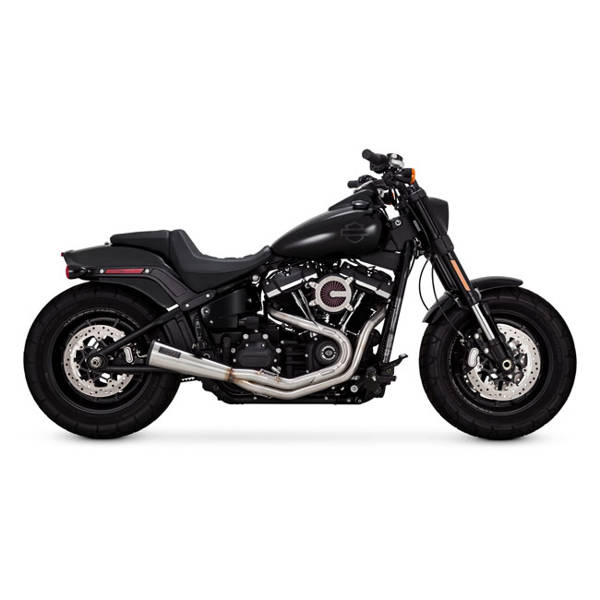 At Vance & Hines they have the know-how for a true competition exhaust system in abundance. This 2-1 Upsweep is another testimony to the capability of the craftsman responsible for this 2-1 system. It had to have a 'Works' finish and not be afraid to show its racing genes. It is therefore hand-TIG welded and made from high grade (ASTM A269) 304 stainless steel with only a brushed finish and a megaphone muffler. Comes with a partial functional heatshield only, there is nothing here that doesn't breath competition including the Vance & Hines badge. Enjoy the sound, performance and a color-scheme that only a true stainless system is able to provide. Compatible with both mid and forward controls. Note: Will not fit models with saddlebags.