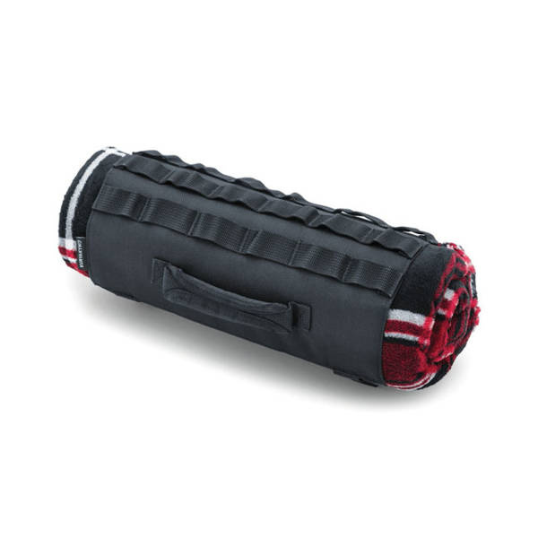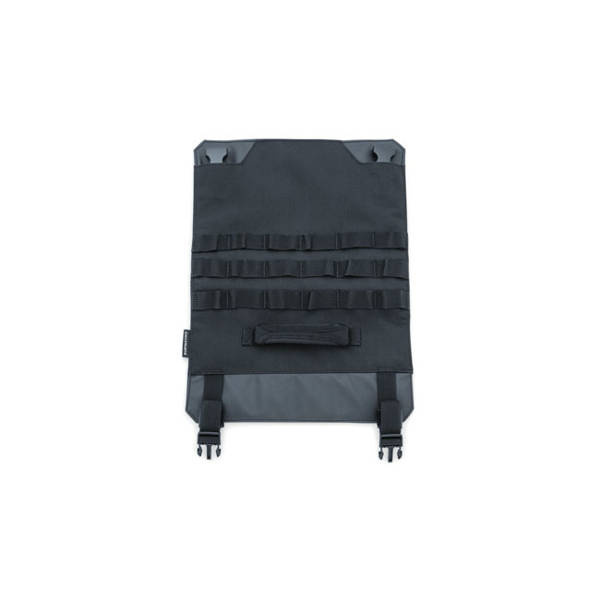 Black; weather-resistant textile; with adjustable buckle straps for multi-purpose mounting; Approx. dimensions: 16.5" (41.9cm) high x 12" (30.5cm) wide x 1" (2.5cm) thick. Rolls up to 12" (30.5cm) wide x 3" (7.6cm) wide)