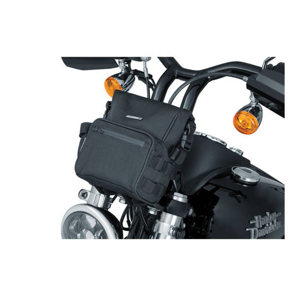 Strap it to your bar, fork, windshield bracket or sissy bar. The Barrio Bag is designed to as go-to stash pouch. Takes everything from your favorite drink to tools. Flexible hook-&-loop straps coupled with multiple MOLLE attachment points accommodate virtually any set-up you can think of. • Dimensions: 7" (17.8cm) wide x 4" (10.2cm) deep x 9" (22.9cm) high (fully expanded) • Cubic Inches: 266 (approx 4.5 liters) • Durable UV-rated, weather-resistant 1200 denier textile material • Roll top design with high-strength hook and loop closure for storage versatility and water resistance • Fully adjustable convenient speed-buckle clasps • MOLLE modular attachments points • Safe and secure storage for wallets, sunglasses, phones, road sodas, tools, and more • Front and side quick-stash pockets