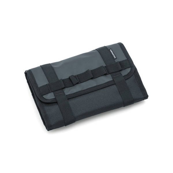 Use as a tool roll for the bike or dopp kit (toiletry bag) for yourself, in all cases the Kuryakyn Travel Accessory Bag is a convenient option for ride essentials. Rolls up for easy storage and features MOLLE loops for external integration with other Kuryakyn luggage to free up all-important packing space. • Dimensions: 10" (25.4cm) wide x 7" (17.8cm) high x 4" (10.2cm) deep • Made from weather-resistant and UV-tested 1200 denier textile • Includes three internal pockets: 1 low-profile mesh pocket, 1 clear spill-proof pocket, and 1 general purpose pocket • Easily attaches to any Kuryakyn luggage equipped with MOLLE modular attachment points
