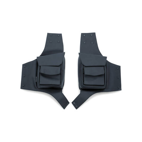Installs in front of the saddlebags to the rear saddlebag guards with magnetic closure. Offers shape retention, empty or full, and is perfect for immediate access to small items, like phones, wallets, sunglasses or any other small item you require quick access to without having to dig into your saddlebags. • Main storage compartment measures 6" (15.2cm) wide x 9" (22.9cm) tall x 3" (7.6cm) deep • Clean, compact design with premium UV-tested rigid vinyl construction that retains its shape • Secure snap attachment fits both early and late-model H-D saddlebag guards • Interior mesh pocket keeps loose items secure • Sold in pairs for right- and left-side storage • Style matches 560334 lower fairing door pockets, sold separately. Note: 97-13 Fitment: Snaps furthest from Pouch. Does not fit with saddlebag guard rails. 14-Later Fitment: Snaps closest to Pouch.