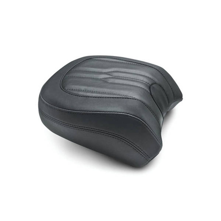 Black. 11" wide. Dagger stitch design. With recess for solo seat with rider backrest. Note 1: Mustang solo seats & passenger seats cannot be mixed with OEM solo or passenger seats. Note 2: Solo seats with a rider backrest require a recessed passenger seat, the recessed section provides the necessary space for the rider backrest. Note 3: For matching rider solo seat see 568418.