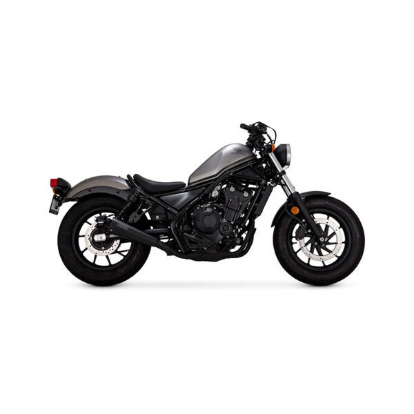 Have a blast wherever you go on the Honda Rebel with the Vance & Hines Upsweep slip-on. Cloaked in a rich ceramic matte black finish, the Upsweep slip-on adds some understated swagger while tuning the welterweight cruiser for a throaty heart-pumping rumble. Mounting hardware and installation instructions included * Tapered cone muffler design * Matte black ceramic finish over Eliminator style end cap * Laser engraved riveted badge * Perforated baffle with fiberglass wrap * Integrate with OEM head pipe and transition heat shield