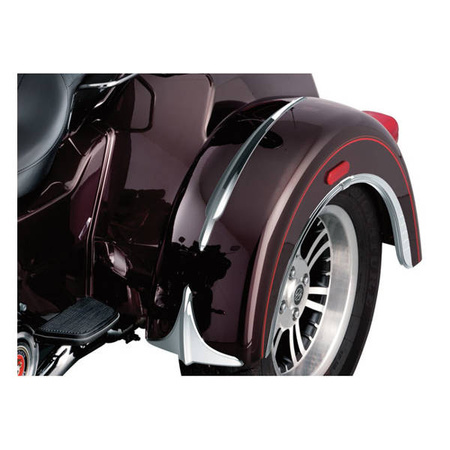 Leading edge rear fender styling. The perfect addition for a touch of class & rear fender edge protection to a very noticeable area. A great dress-up part and easy to install. Manufactured from chrome plate ABS.