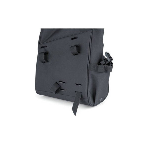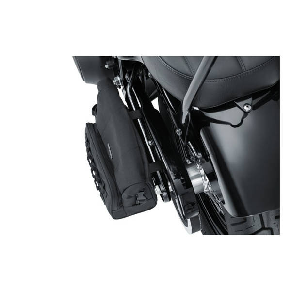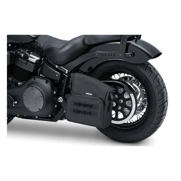 Mounts to virtually any exposed swing arm. Secure safety-focused strap system keeps slack in the bag to avoid potential belt/chain interference. The Hoodrat pays homage to a long lineage of bobber and chopper swing arm bags by blending time-tested features with modern upgrades. Built to take a beating and with almost a 1.000 cubic inches (16.4 liter) of capacity (fully expanded) it is a worthwhile addition to your ride. The signature secure roll-top design allows easy access while mounted and gives added protection from the elements. Made from UV-rated, weather-resistant 1200 denier textile. Comes with an external zippered compartment plus multiple external MOLLE attachment points for tools/bungee cords. Approx. dimensions: 11" (27.9cm) wide x 15" (38mm) tall (closed) x 6" (15.2cm) deep. Approx. capacity: 990 Cui / 16.2 liter.