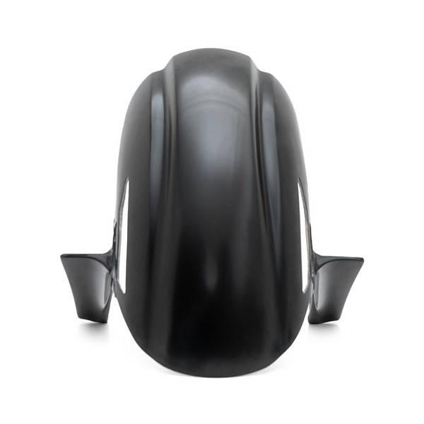 Ready to replace the stock 'middle of the road' fender that was designed to please almost everyone. If your style is a more aggressive and in your face look, this is the one. Made of hand-laid unpainted black gel coated fiberglass that is very stiff, strong, straight, and light. It comes pre-drilled, all necessary mounting hardware is included. Note: All parts require fitment checks before painting and final assembly.