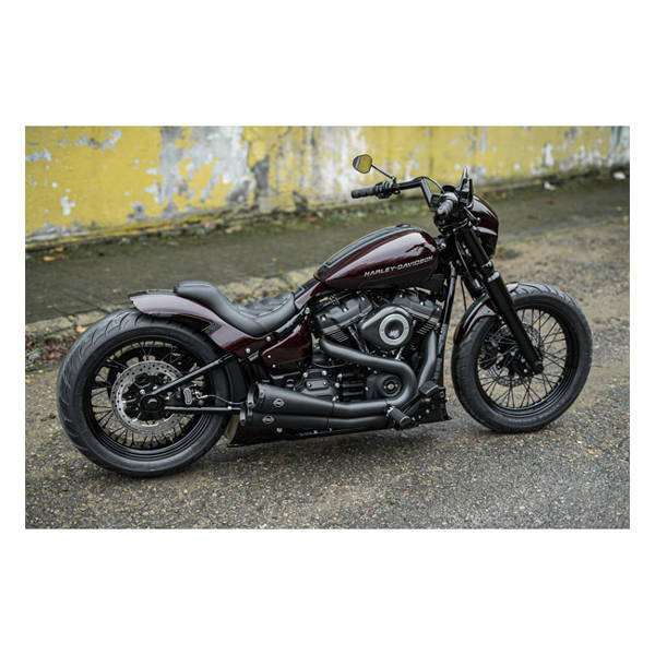 This seat is not designed to carry the weight of a passenger. Does not come with fender struts but with black powder coated side covers only. Parts include: Rear fender, seat pan, side covers, special bolts & grommets. ECE approved LED taillight. The 'Bobbstr' is a short rear fender kit that will give your Softail a crazy cool power look. Compatible with the OEM solo seat. A seat pan is included for those who want to fabricate their own seat. If you feel no need to take the custom seat fabrication route, a special Killer Custom custom seat, with upholstery, is separately available as 921591 or 921592. This fender kit includes a taillight, the OEM turn signals require relocation. Made of hand-laid unpainted black gel coated fiberglass that is very stiff, strong, straight and light. Includes installation hardware and instructions. Note: All parts require fitment checks before painting and final assembly. Note: A Killer Custom seat with upholstery is separately available as 921591 or 921592. Note: Seat pan foam only, without upholstery, is available as 921594. Note: For that true Killer look, using a lowering kit, available from Killer Custom as 587888 is recommended, it offers 20mm or 30mm lowering.