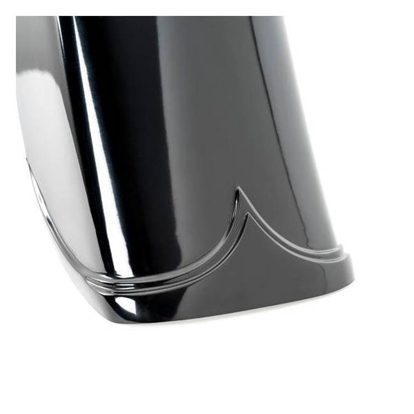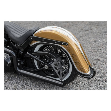 Classic pre-drilled FL style fender with a noticeable 4" (10cm) stretch at the rear for a Killer Custom low ride impression, even without a lowering kit. The old school classic trim tip gives the bike the laid back vintage look for the latest Softails. Made of hand-laid unpainted black gel coated fiberglass that is very stiff, strong, straight and light. Note: All parts require fitment checks before painting and final assembly.