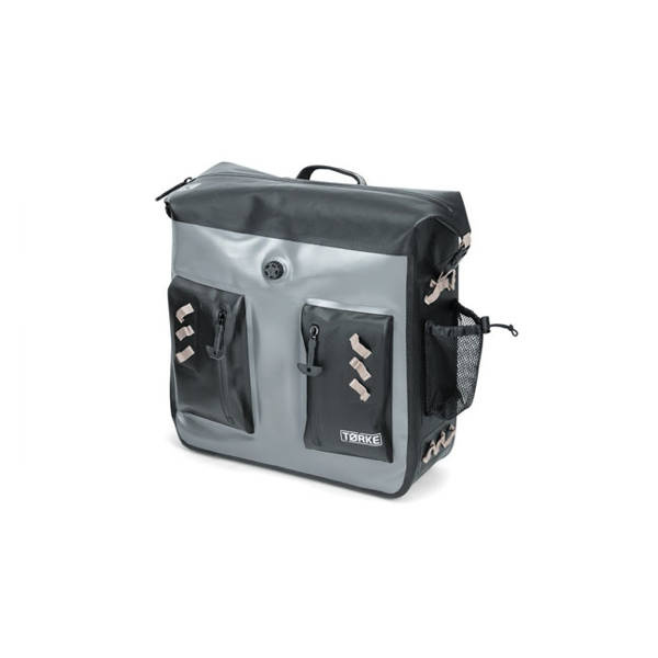 A fully waterproof and air-tight bag, perfect for extreme or marine conditions. Made from durable, fully welded waterproof TPU construction with submersible IPX7-rated zippers with lockable pulls, a removable hi-vis internal support structure. Includes an interior hook-&-loop pouch and neoprene pockets for tablets or laptops, exterior waterproof pockets, lockable zipper pulls, water bottle pocket, removable cargo net for external storage, integrated air/purge valve to easily vent excess air and a removable shoulder strap for easy portability off the vehicle. Dimensions: 16" ((40.6cm) wide x 15.5" (39.4cm) high x 6" (15.2cm) deep (24 liters).