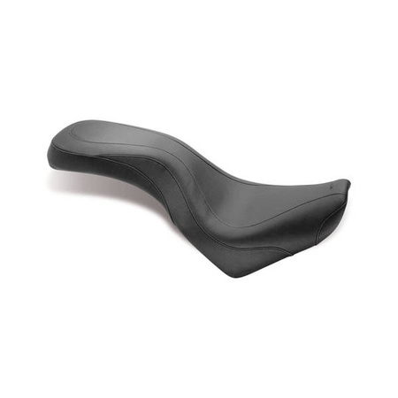 A low and lean seat, front width 12" and rear width 8", with detailed stitch work that feels good for both the rider and the passenger