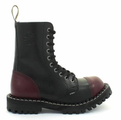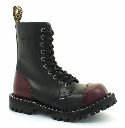combat boots STEEL 105/106/O FULL BLACK/ENDS BURGUNDY