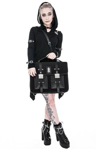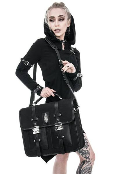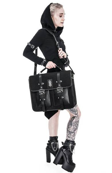 Your gothic style will be emphasized by strong accents: leather stripes on the sleeves and a pentagram clasp.