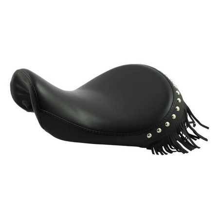 12" wide. Foam. A low profile seat with a smooth upholstery and a classic fringes design detail, perfectly matching a classic styled bike. Hand-built with precision contoured marathon foam and, like all LePera seats, on a 16 gauge black powder coated steel base plate. Note: A matching Sanora passenger seat is optionally available. Note: Seats for 07-09 XL models will also fit 10-up XL models. For best results LePera advises to use the 10-up XL seat for 10-up XL model years.