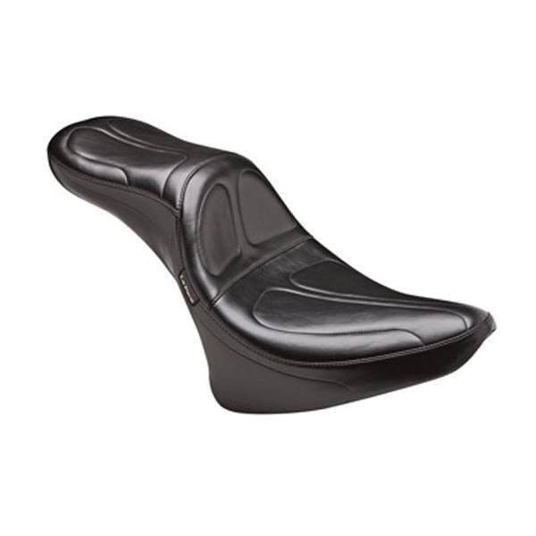 Foam. Maverick stitch upholstery. Rider seat 14.5" wide, passenger seat 11" wide. Lustrous comfort, just like the standard Maverick, but the seating area is positioned 2 inches further backward to accomodate the longer legs of tall riders.