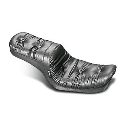 Foam. Regal Plush upholstery. 10.5" rider & 7.75" passenger seating area width. A lower than stock profile for a deep, comfortable seating area. Plenty of lower back support for all day cruising without the bulk of large Touring seats.