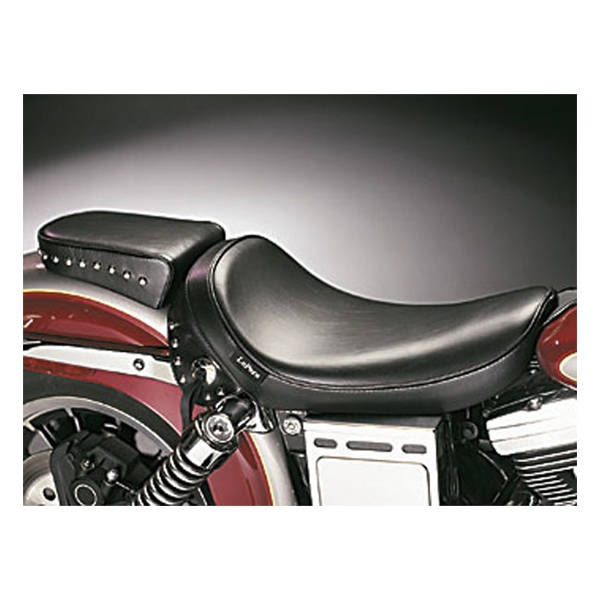 11" wide. Foam. A low profile seat with a smooth upholstery and a classic skirt design detail, perfectly matching a classic styled bike. Hand-built with precision contoured marathon foam and, like all LePera seats, on a 16 gauge black powder coated steel base plate. Note: An matching Sanora passenger seat is optionally available.