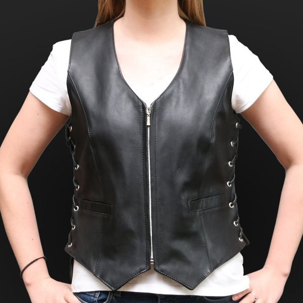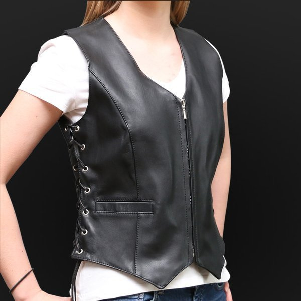 • Feminine motorcycle vest made of high-quality soft cowhide - 0.8 mm. It is fasten with a zipper. The front has pockets. To be worn on a jacket, on a t-shirt or directly on the body.