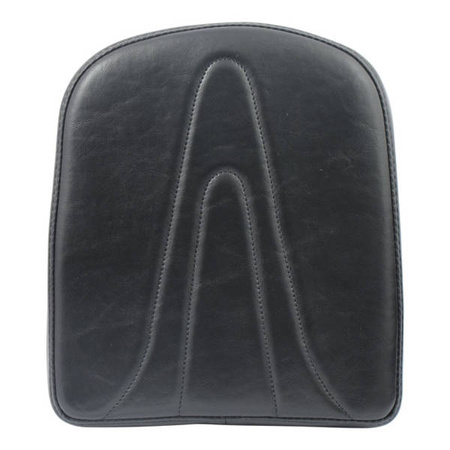 Universal sissy bar back pad. Black vinyl upholstery. Sorrento style stitch pattern. With chrome plated studs. Incl. universal mounting hardware. Approx. dimensions: 10" (25.4cm) high x 10" (25.4cm) wide.