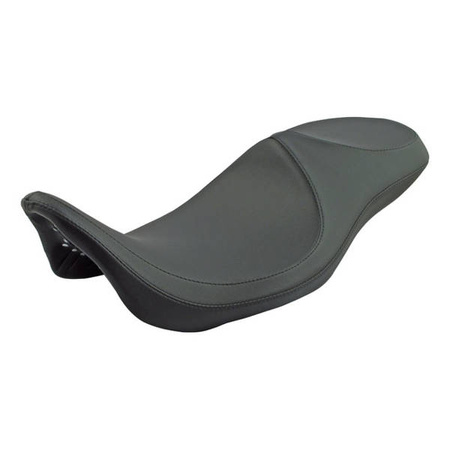 Foam. 14.5" rider & 11" passenger seat width. If you think the standard Villain doesn't offer enough support, the Super Villain is your choice. The rider area is a comfy 14 1/2" wide and your passenger has nothing to complain about either with a generous 11" wide seating area. Like the regular Villains, this is unlike any other seat currently on the market, certainly not a design for the faint of heart. Apart from the wider passenger and rider seat area, it comes with the same high arching rider seat, that does a great job in battling lower back fatigue. Good for another extra mile in comfort. Both rider and passenger will enjoy LePera's Marathon foam filling and the stability of this steel based seat.