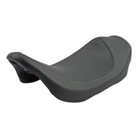 Foam. 10" wide. Standard stitch pattern. Solo seats may not be practical for all riders, but if you refuse to drag your 'Ol Lady along a true solo is nothing shy of great. The solo Villain seat is the most extreme design of them all. It'll give an excellent ride with great lower back support. A pillion pad is not even available, added bonus!