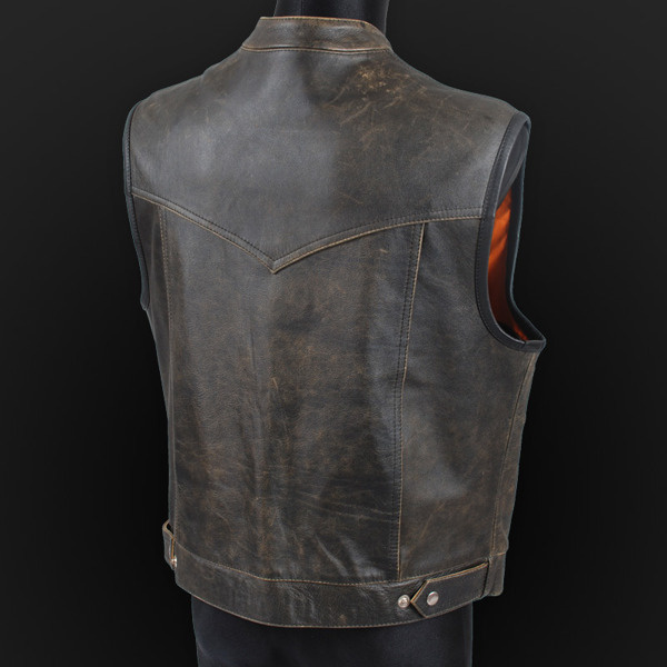 • Motorcycle vest made of high-quality thick cowhide. Leather so-called "Old America". It is fasten with a YKK zipper and stripped belt to adjust the circumference. 4 external and 3 internal pockets. To be worn on a jacket, t-shirt or directly on the body.