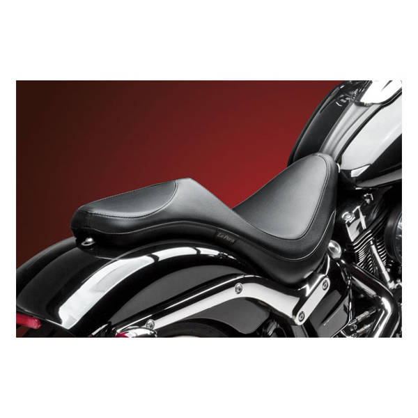 Foam. 10.25" rider & 7" passenger seat width. A LePera design, with a very distinctive styling. The Villain is unlike any other seat currently on the market, certainly not a design for the faint of heart. Features a comfortable passenger area and a high arching rider seat area, that does a great job in battling lower back fatigue. Good for an extra mile in comfort for both rider and passenger with LePera's Marathon foam filling.