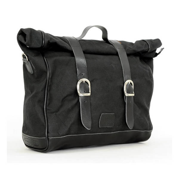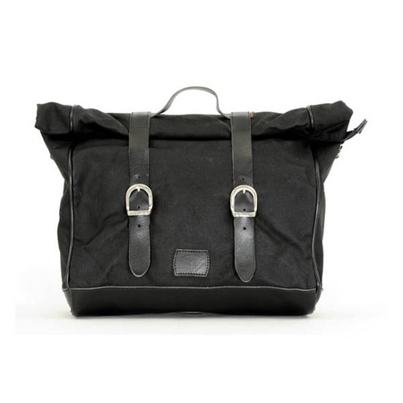 Universal motorcycle saddlebag. In OLD CHOPPER style. Dimensions: 42cm x 30 cm x 15cm. Made from waxed cotton canvas and finished with oiled ranger leather.