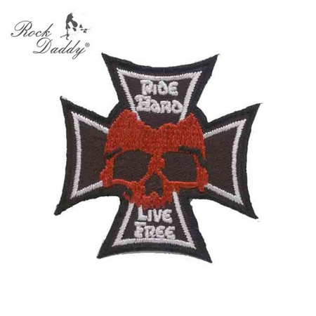 Patch of the German company ROCK DADDY will revive even worn and boring pants or jackets. A red skull without a lower jaw on a black cross. Embroidered patch with dimensions: 9 x 9 cm \ m / YOU ROCK!