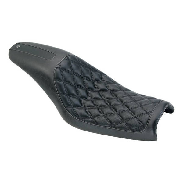 Triple diamond stitched design, a classic in fine upholstery with raised perforated diamond pattern. Built to also take a passenger along, in a relatively comfortable way. All is done without taking away the sharp look of a solo seat. Comes with condensed polyurethane foam and a strong vinyl upholstery, ready to chew away more than a few miles of asphalt.