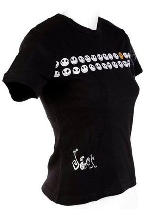 A womanish, cotton, licensed NIGHTMARE BEFORE CHRISTMAS T-shirt. The well-known Jacka Skellington's graphics on the front, on the back. 100% cotton is the quality and comfort of wearing. Licensed product.
