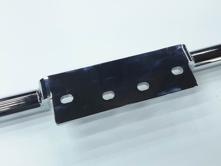 • Classic chromed front engine guards. EXTRA version with grinding welds and joints. Galvanic cover: copper, nickel, chrome. Made of precision steel pipe: Ø 32 mm, thickness 2.5 mm. Width ~70 cm. One-piece construction. Mounting screws included.