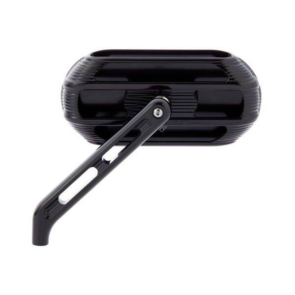 Another great example of why Arlen Ness still hovers above the rest, after half a century of customizing. Forged aluminum multi-parts open 3-D design mirror with stainless pivot hardware. Dimensions 5.45" wide x 2.5" tall. Black contrast machined.