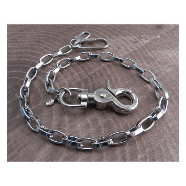 Heavy wallet chain with a guarantee of the highest world-class quality and materials used. AMIGAZ-a global brand. Made in USA. Chrome-plated steel. Total length 16". Chain links 5/8" lenght by 5/16" width. Sturdy snap hook and dual wallet hook end-peces.