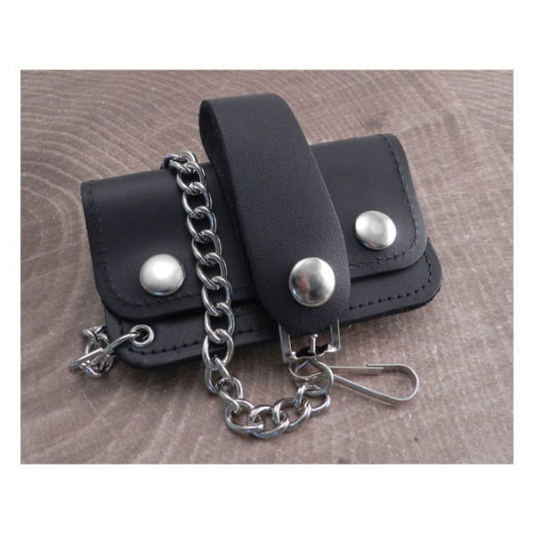 • Leather wallet with a guarantee of the highest world-class quality. AMIGAZ-a global brand. With belt loop wallet chain; measures approximately 4-1/2" x 2 1/2"; chain is a little over 12" plus the 3.5" belt loop. Made in USA.
