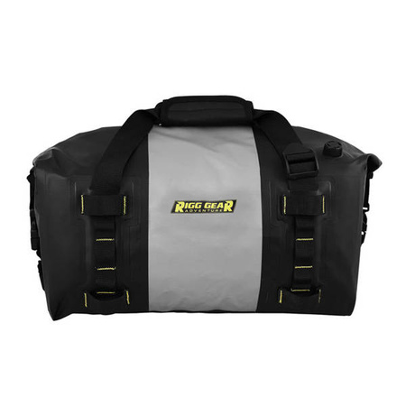 - 100% waterproof duffle bag - All seams are electronically heat welded - Made from waterproof and durable PVC Tarpaulin - Watertight roll closure with quick release buckles - UV Coated outer material cleans easily and prevents slipping or marking - Securely mounts using patented RIGG STRAP® system - RIGG STRAP® can also be used as a separate tie down system - Removable internal panels help bag hold its shape - Can be mounted across or along seat or tail section - Purge valve makes for compression easy - Dual-purpose carry handles can be used as compression straps - Reflective accents for enhanced visibility - Easily mounts to motorcycle, ATV/UTV, PWC, and snowmobile - 40 liter. 20" long x 11" wide x 11" high