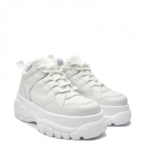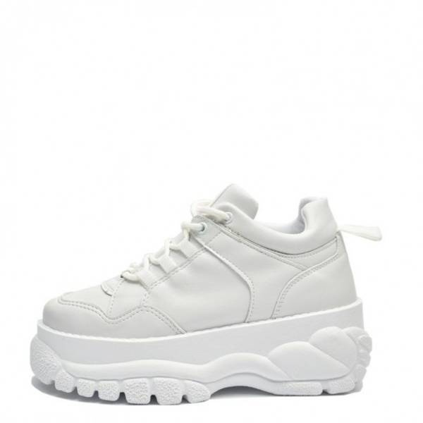 • White feminine platform shoes made of high quality vegan leather. The sole hight 4-6 cm (front-back). Polish production. The highest quality of materials and workmanship guarantee long and comfortable usage.