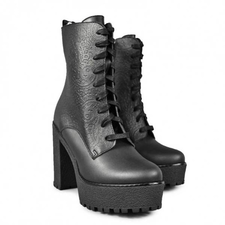 • Black feminine shoes made of high quality vegan leather. The sole hight 3,5 cm (front-back). Polish production. The highest quality of materials and workmanship guarantee long and comfortable usage.
