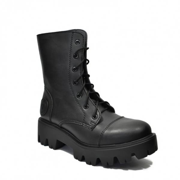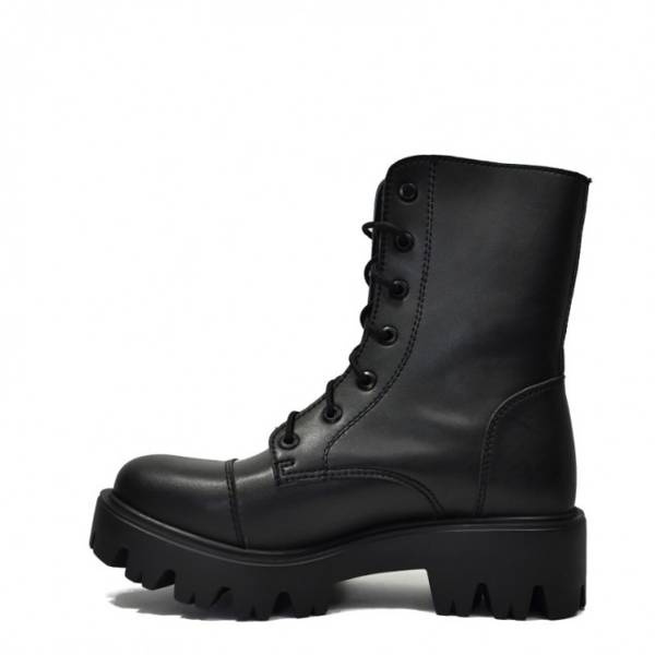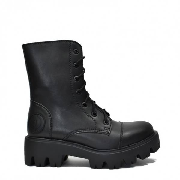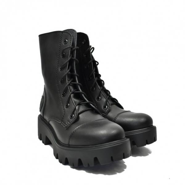 • Black feminine platform shoes made of high quality vegan leather. The sole hight 3-5 cm (front-back). Polish production. The highest quality of materials and workmanship guarantee long and comfortable usage.