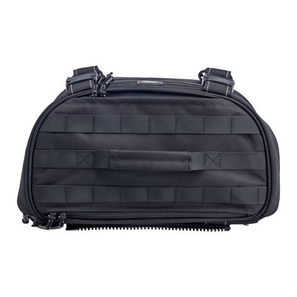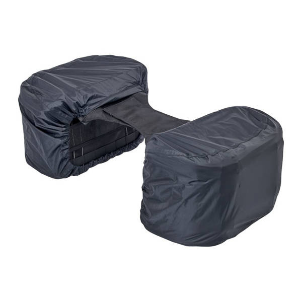 Smaller size, for 1 to 2 day trips. These EXFIL-18 holds eighteen 12-ounce beer cans. These new EXFIL saddlebags sets handle business with the same smart design and rugged construction as every bag in the Biltwell moto luggage arsenal. This is a throw-over saddlebag set that comes as a left & right bag. The center section, equipped with velcro, is placed over your fender and under your seat. The saddlebags are simply zippered to the center section. On the backside of the bags a mesh strip slides behind any universal saddlebags support (saddlebag supports are sold separately) to which the bags can be attached with the attached strips, D-rings or use the molle attachment points that are found on the front and back of the bags allow you to attach the bags firmly to the saddlebag supports and additional gear to the bags. Inside the bag you'll find a large bright orange (helps to find things quicker) compartment, a separate flat slide-in zippered compartment for laptops or so on the backside and on top a zippered flat slide-in compartment for vehicle documents, smartphones or other flat objects that must be easy accessible. The hidden cable port into main compartment is perfect for charging devices. Waterproof nylon rain covers with elastic gathers and drawstring closure provide extra protection in extreme conditions. Strong, flexible EVA foam panels inside main compartment add structure and durability. UV-treated 1680-denier ballistic nylon exterior resists moisture and fading. These are good for the long haul.