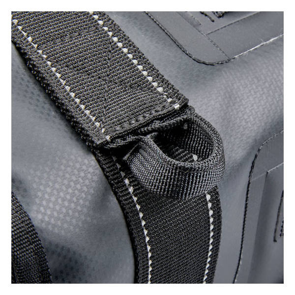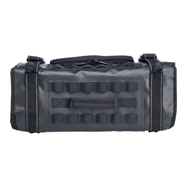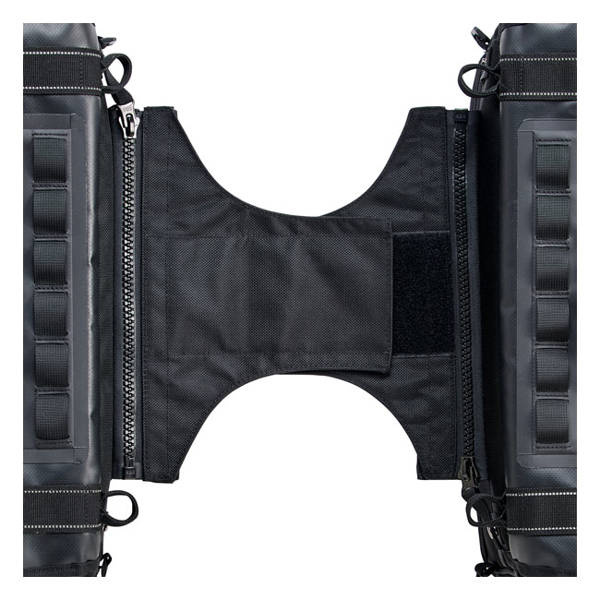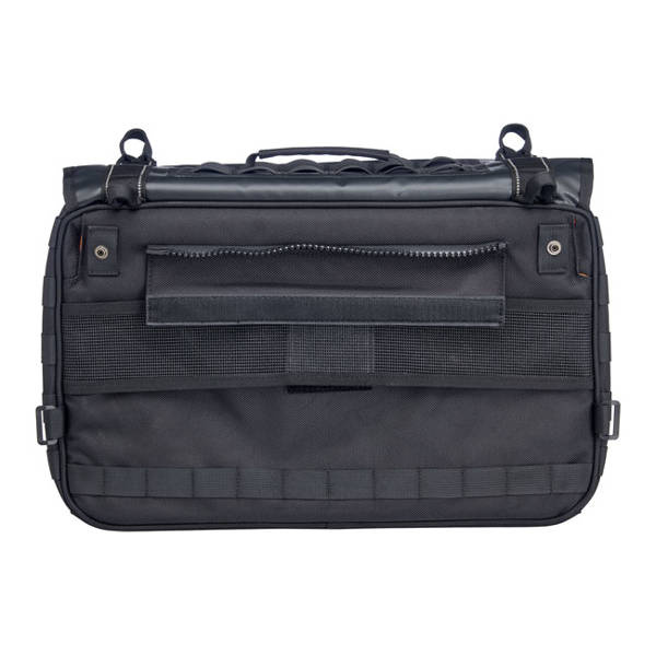 Full size EXFIL-36 holds thirty six 12-ounce beer cans. These new EXFIL saddlebags sets handle business with the same smart design and rugged construction as every bag in the Biltwell moto luggage arsenal. This is a throw-over saddlebag set that comes as a left & right bag. The center section, equipped with velcro, is placed over your fender and under your seat. The saddlebags are simply zippered to the center section. On the backside of the bags a mesh strip slides behind any universal saddlebags support (saddlebag supports are sold separately) to which the bags can be attached with the attached strips, D-rings or use the molle attachment points that are found on the front and back of the bags allow you to attach the bags firmly to the saddlebag supports and additional gear to the bags. Inside the bag you'll find a large bright orange (helps to find things quicker) compartment, a separate flat slide-in zippered compartment for laptops or so on the backside and on top a zippered flat slide-in compartment for vehicle documents, smartphones or other flat objects that must be easy accessible. The hidden cable port into main compartment is perfect for charging devices. Waterproof nylon rain covers with elastic gathers and drawstring closure provide extra protection in extreme conditions. Strong, flexible EVA foam panels inside main compartment add structure and durability. UV-treated 1680-denier ballistic nylon exterior resists moisture and fading. These are good for the long haul.