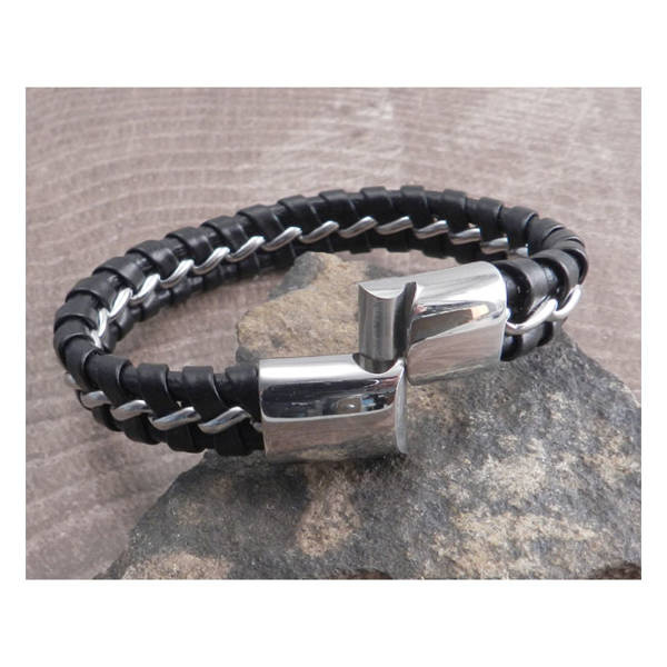 Bracelet with a guarantee of the highest world-class quality. AMIGAZ-a global brand. Made in USA. Black. Made of natural leather and stainless steel. Total length 8".