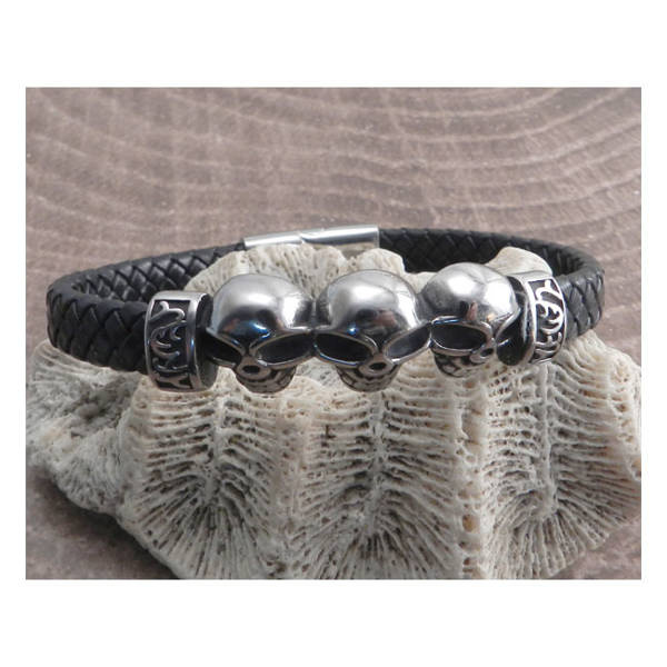 bracelet AMIGAZ Skull Head Black 8"
