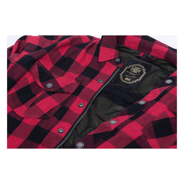 • Flannel riding shirt. CE Approved. Polyester inner lining and 100% Aramid DuPont™ Kevlar® fiber protection layer. Outer lining consists of 100% cotton. Made from functional fabric with breathable, waterproof. Pockets for elbow,shoulder, back protectors.
