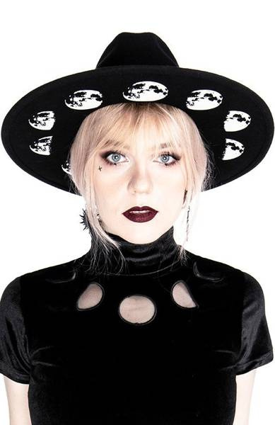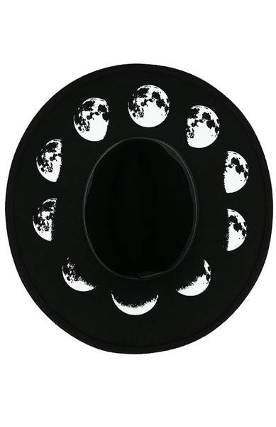 The print on the brim depicts the moon in different phases. In the same way, you can wear a gothic hat in different ways, to different outfits, for different occasions, regardless of your mood or weather.
