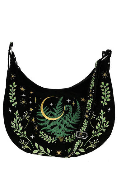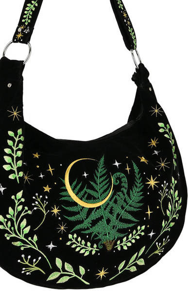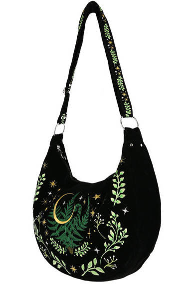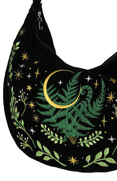 The Restyle hobo bag with embroidery of fern leaves, stars, and a golden crescent is a tribute to feminine nature. It’s mystical, and at the same time stylish and very roomy.
