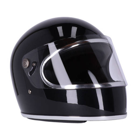 • Multifunctional, retro inspired full-face helmet designed for everyday use. Helmet is made of ‘RQ LIGHT’ fiberglass shell with a multi-density EPS liner. CE E22-05 approved. Features double D buckle. Cafe Racer style. CE-certified visor.