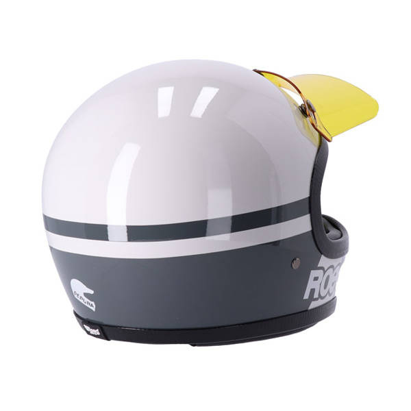 • The ultimate full-face travel buddy for wherever the journey takes you. Helmet is made of ‘RQ LIGHT’ fiberglass shell with a multi-density EPS liner. CE E22-05 approved. Features double D buckle. RQ XXL retro trim, removable dark smoke translucent peak.