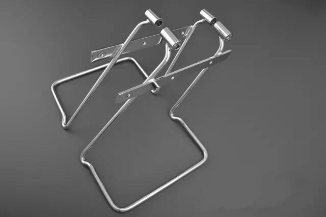 • Chrome saddlebag support rails for HONDA Shadow VT750 DC/Black Widow. Hangers with props for saddlebags. Made of steel chrome profile. Galvanic coating: copper, nickel, chrome. Set of both left + right saddlebag support rails and mounting screws.